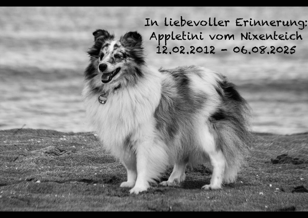 7.10.2023: Herzlichen Glückwunsch zum 14. Geburtstag meine Weltbeste Ur-Uroma „Ally“ ( DVCH Club und VDH Allegra All in One ) So langsam fangen zwar die ersten Zipperlein bei Dir an, doch bist Du immer noch die uneingeschränkte Chefin und Stammhündin der Nixenteich Shelties. Du bist und bleibst einfach was ganz besonderes mit Deinem unvergleichlichen tollen Charakter. Nur das Hören ( oder Horchen?! ) klappt nicht mehr so gut. Wäre der Altersstarrsinn noch nicht erfunden, dann würdest Du es jetzt tun. Aber wer könnte da schon böse sein? Auf hoffentlich noch viele schöne Momente bei uns 🥰