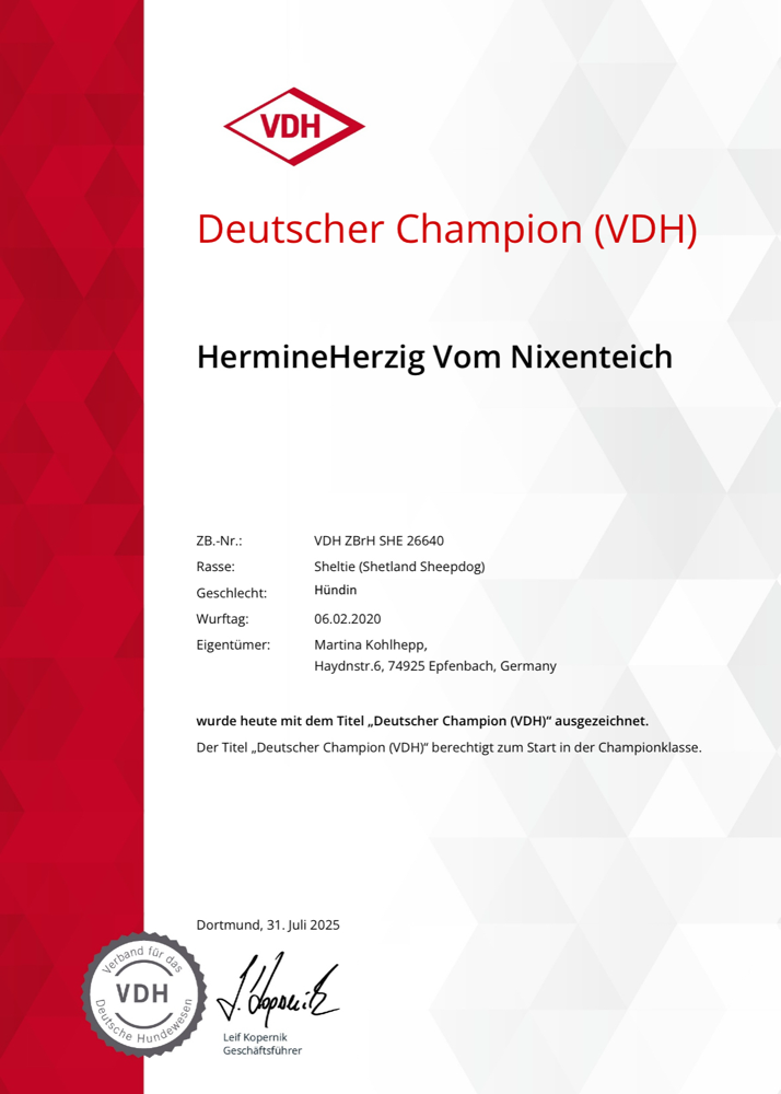Zuchtzulassung 22.5.22 mit Vorzüglich, KKL 2